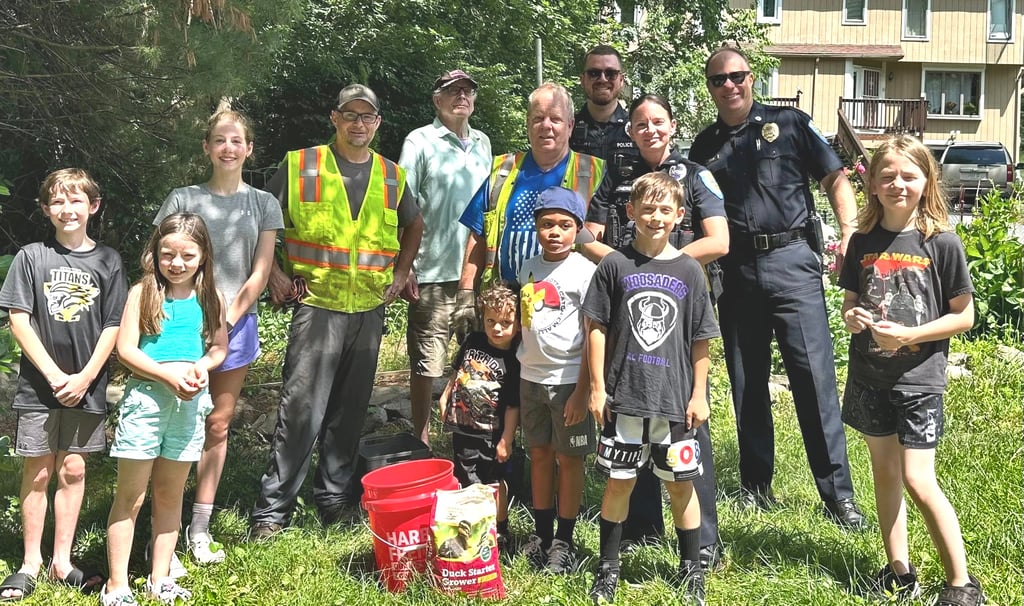 Thanks to teamwork between the children, neighbors, police and two DPW workers, 10 ducklings were rescued and returned to their mother. To view a video of the rescue, click here. To view a video of the reunification, click here.